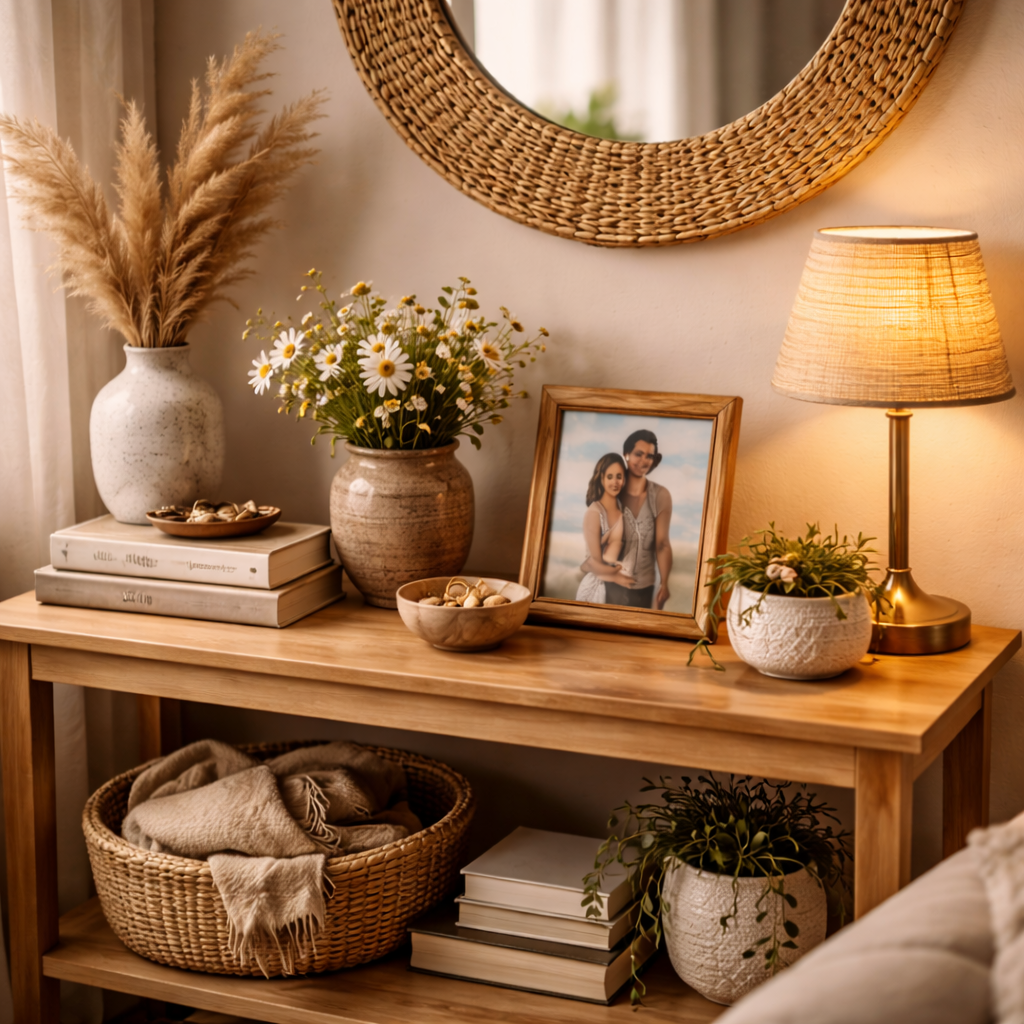 Banyak orang juga menata ruang dengan benda yang memiliki arti khusus. Misalnya hadiah dari teman, benda kenangan keluarga, atau barang kecil yang mengingatkan pada momen tertentu. Detail seperti ini sering membuat rumah terasa lebih akrab.